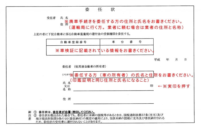 永久抹消登録や解体届出手続きを業者に依頼するときに必要になります。